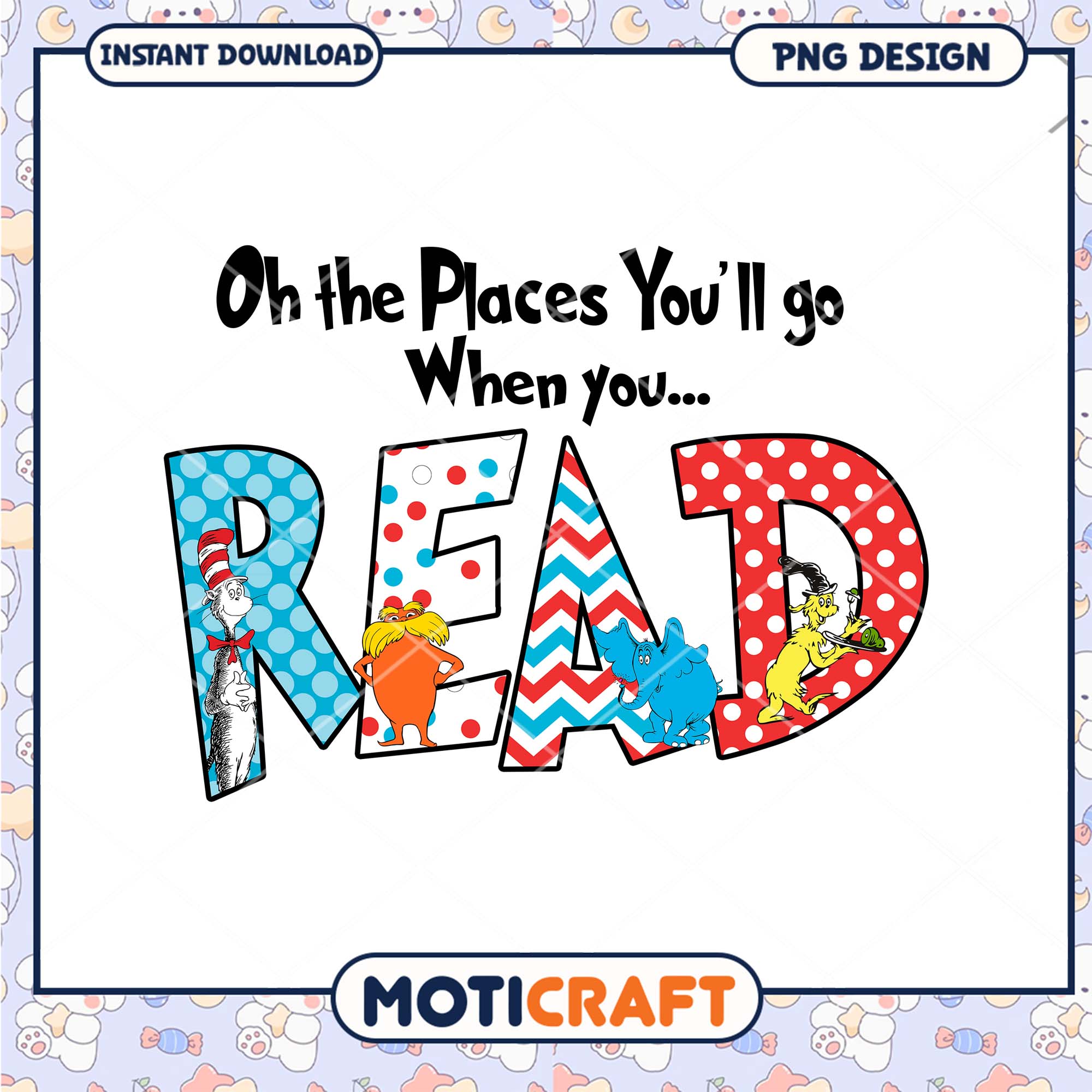 Colorful Read Sign with Dr Seuss Characters PNG Image for Kids is part of our Dr. Seuss collection, featuring vibrant, high-quality designs inspired by Dr. Seuss’ beloved world. Perfect for crafts, digital design, and personal creations, these PNG files bring iconic characters like The Cat in the Hat, Horton, and the Grinch to life. With transparent backgrounds for easy layering, our Dr. Seuss PNG files are ideal for use in Cricut and Silhouette projects, custom t-shirts, mugs, and more. Whether you’re celebrating Read Across America or simply love Dr. Seuss’ quirky style, this collection offers endless creative possibilities for Seuss fans of all ages. Start crafting today!
