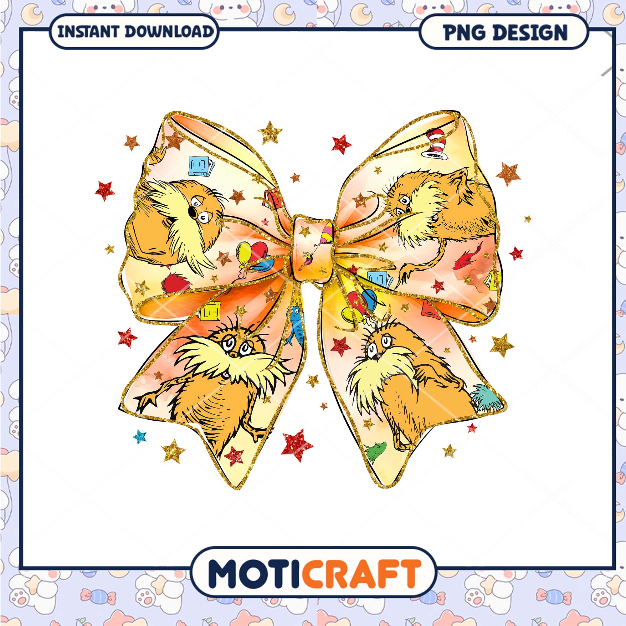 Cute Lorax Themed Bow PNG with Colorful Designs and Stars