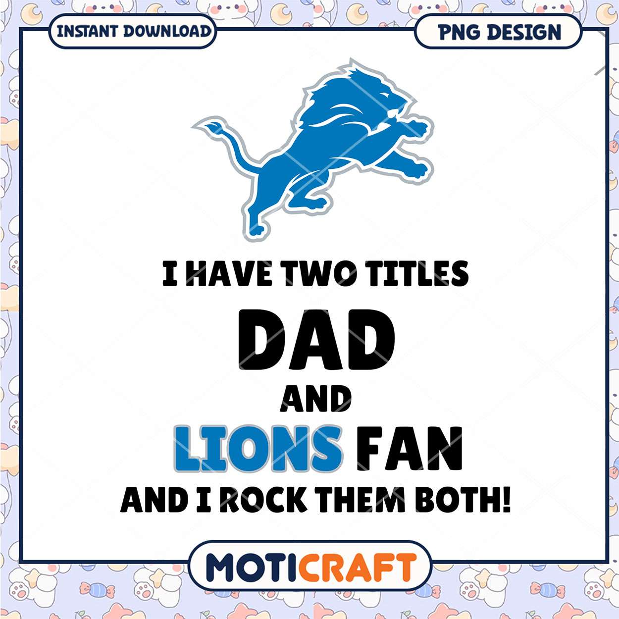 Dad Lions Fan PNG Design is a part of our NFL PNG collection! These high-quality designs feature footballs, helmets, team logos, and more. Whether you’re creating custom apparel, fan gear, or game day decorations, our NFL PNG files are easy to use and perfect for any project. Support your favorite team with unique designs that bring the excitement of football season to all your creations!