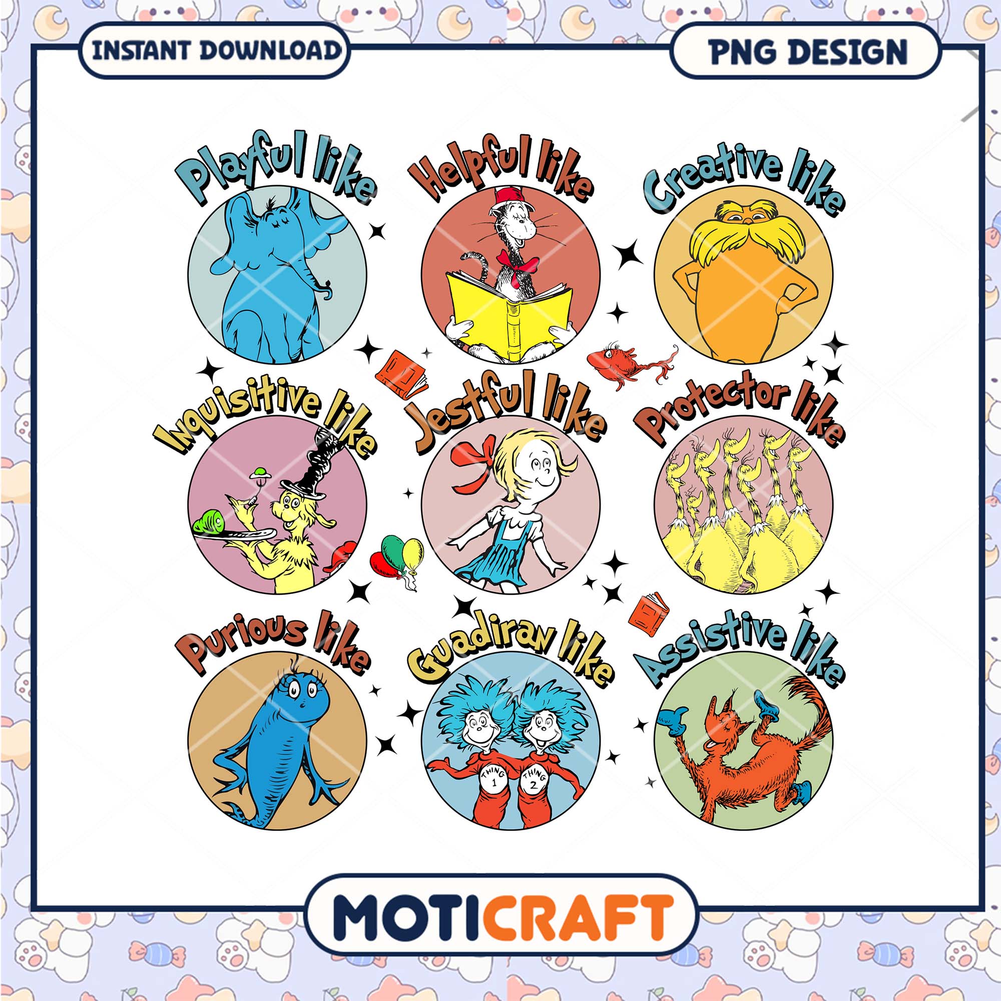 Dr Seuss Character Traits PNG is part of our Dr. Seuss collection, featuring vibrant, high-quality designs inspired by Dr. Seuss’ beloved world. Perfect for crafts, digital design, and personal creations, these PNG files bring iconic characters like The Cat in the Hat, Horton, and the Grinch to life. With transparent backgrounds for easy layering, our Dr. Seuss PNG files are ideal for use in Cricut and Silhouette projects, custom t-shirts, mugs, and more. Whether you’re celebrating Read Across America or simply love Dr. Seuss’ quirky style, this collection offers endless creative possibilities for Seuss fans of all ages. Start crafting today!