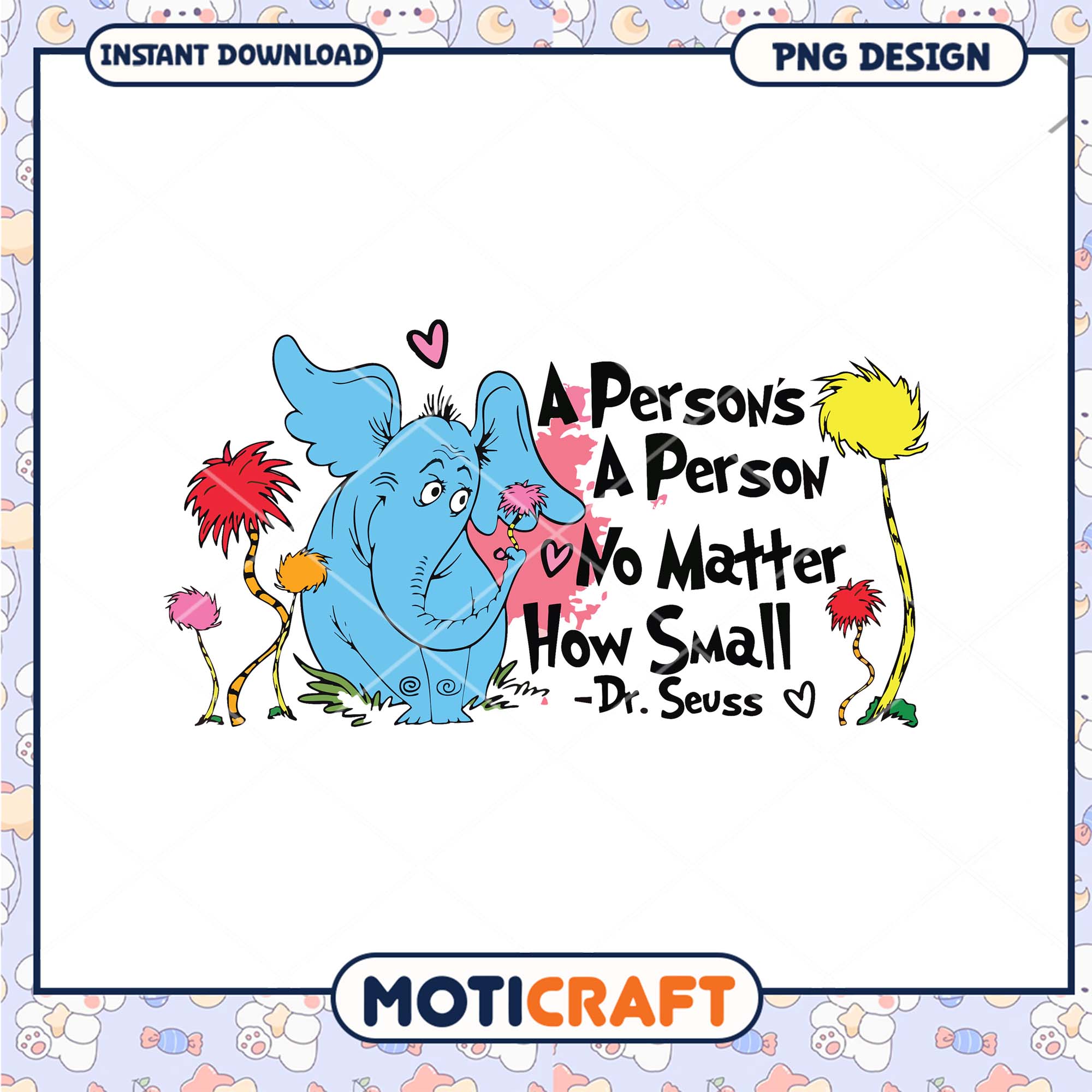 Dr Seuss Horton PNG A Person No Matter How Small is part of our Dr. Seuss collection, featuring vibrant, high-quality designs inspired by Dr. Seuss’ beloved world. Perfect for crafts, digital design, and personal creations, these PNG files bring iconic characters like The Cat in the Hat, Horton, and the Grinch to life. With transparent backgrounds for easy layering, our Dr. Seuss PNG files are ideal for use in Cricut and Silhouette projects, custom t-shirts, mugs, and more. Whether you’re celebrating Read Across America or simply love Dr. Seuss’ quirky style, this collection offers endless creative possibilities for Seuss fans of all ages. Start crafting today!