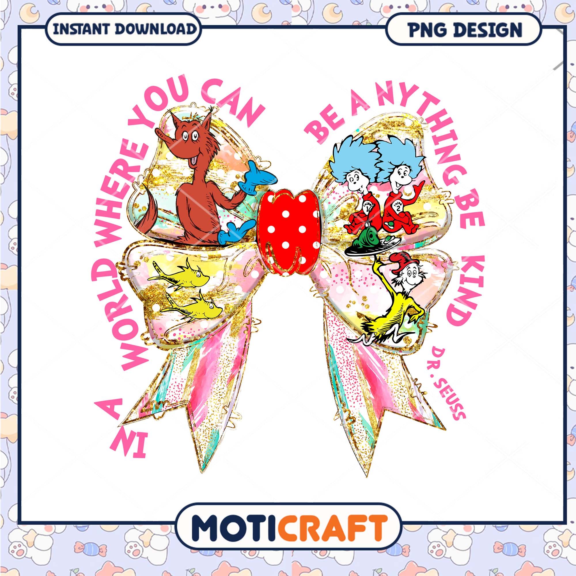 Dr Seuss Inspirational Bow Design Be Kind and Creative PNG is part of our Dr. Seuss collection, featuring vibrant, high-quality designs inspired by Dr. Seuss’ beloved world. Perfect for crafts, digital design, and personal creations, these PNG files bring iconic characters like The Cat in the Hat, Horton, and the Grinch to life. With transparent backgrounds for easy layering, our Dr. Seuss PNG files are ideal for use in Cricut and Silhouette projects, custom t-shirts, mugs, and more. Whether you’re celebrating Read Across America or simply love Dr. Seuss’ quirky style, this collection offers endless creative possibilities for Seuss fans of all ages. Start crafting today!