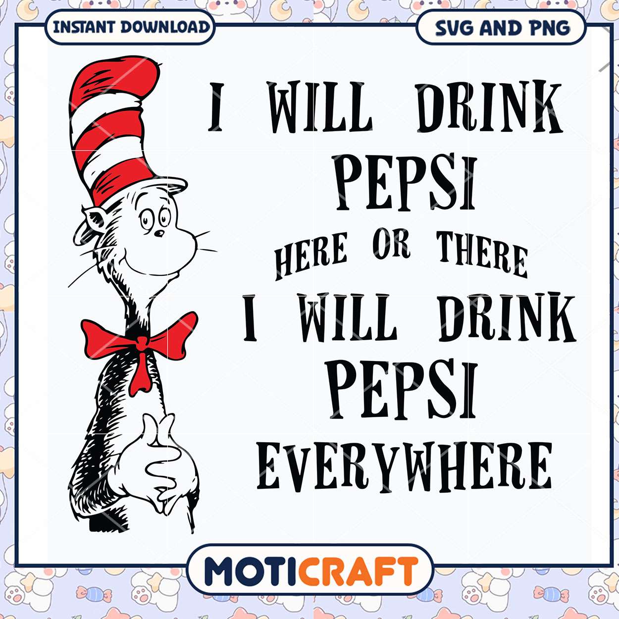 Drink Pepsi Art Printable is part of our enchanting Dr. Seuss collection, designed to bring the quirky world of Dr. Seuss into your creative projects. Featuring iconic characters like The Cat in the Hat, the Lorax, and the Grinch, these scalable vector graphics are perfect for Cricut, Silhouette, and other cutting machines. Ideal for creating personalized t-shirts, mugs, party favors, or classroom decorations, our Dr. Seuss SVG files are easy to use and ensure sharp, high-quality results every time.