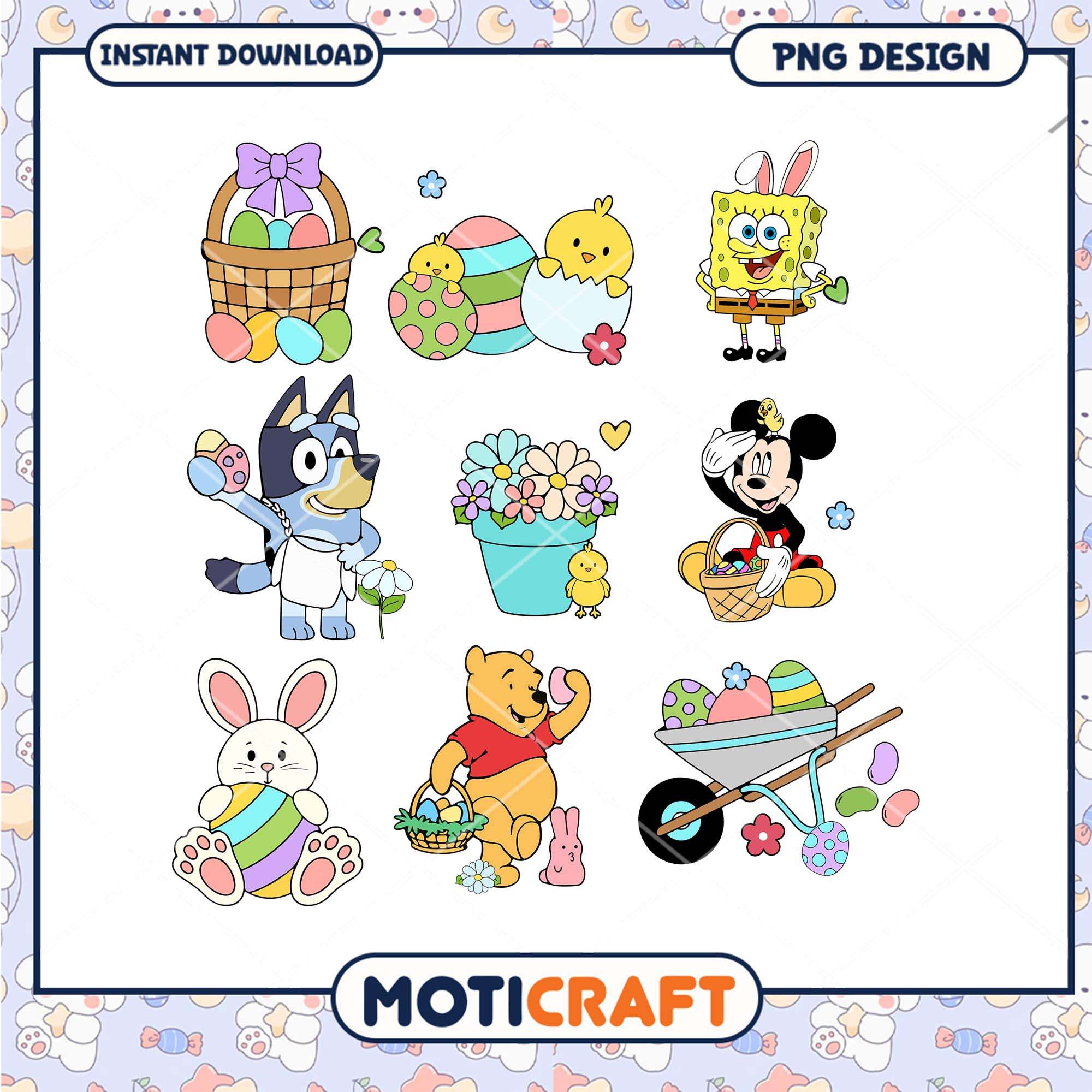 Easter PNG Bundle Cute Cartoon Characters is part of our Easter collection! This charming set features high-quality designs, including colorful Easter eggs, adorable bunnies, blooming flowers, and festive symbols of renewal. Perfect for creating custom t-shirts, party invitations, greeting cards, and digital artwork, these PNG files are compatible with popular design software and cutting machines. Whether you’re decorating for Easter, crafting personalized gifts, or designing holiday cards, our Easter PNG collection brings joy and creativity to your projects.