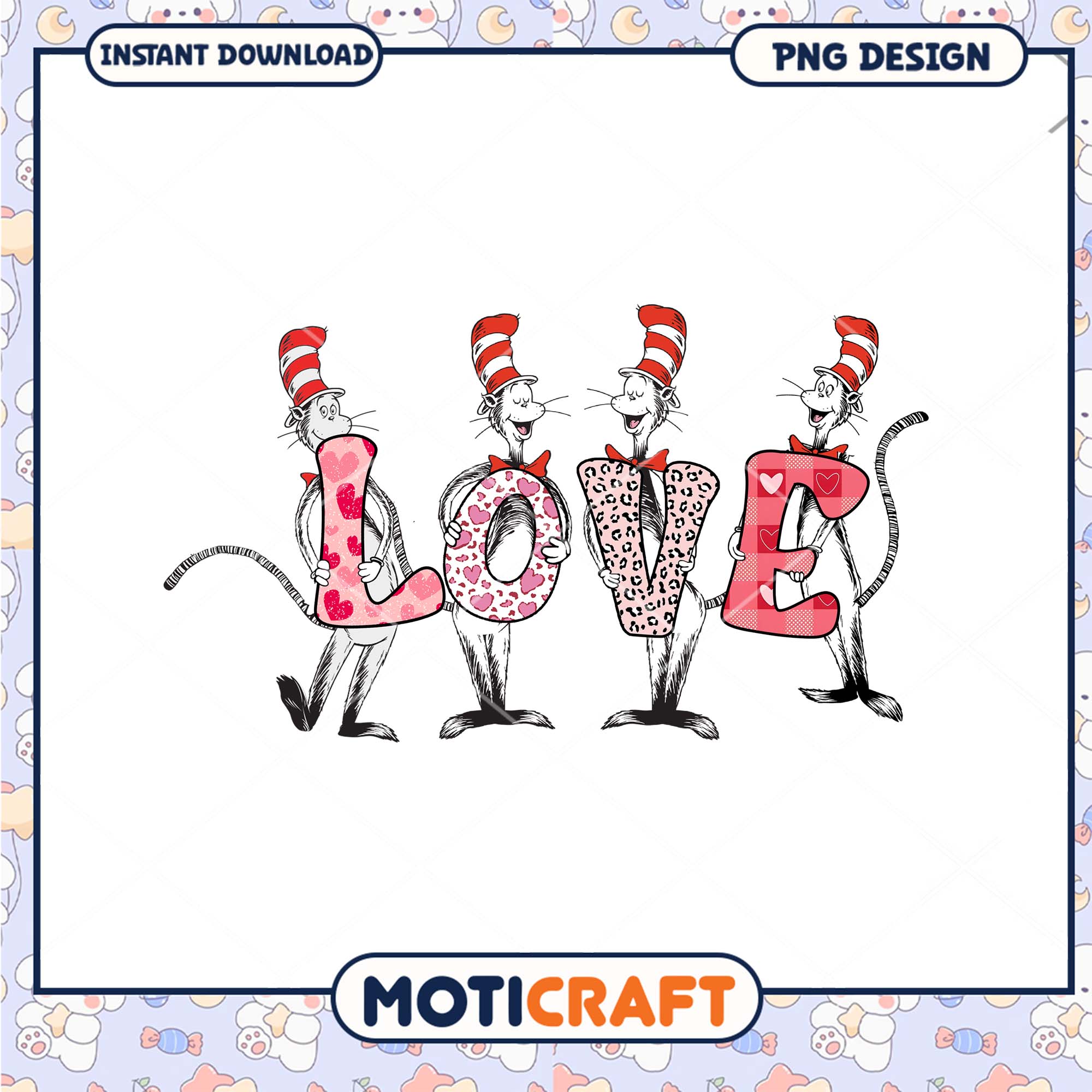 Fun Cat in the Hat Love Design PNG for Kids and Parties is part of our Dr. Seuss collection, featuring vibrant, high-quality designs inspired by Dr. Seuss’ beloved world. Perfect for crafts, digital design, and personal creations, these PNG files bring iconic characters like The Cat in the Hat, Horton, and the Grinch to life. With transparent backgrounds for easy layering, our Dr. Seuss PNG files are ideal for use in Cricut and Silhouette projects, custom t-shirts, mugs, and more. Whether you’re celebrating Read Across America or simply love Dr. Seuss’ quirky style, this collection offers endless creative possibilities for Seuss fans of all ages. Start crafting today!