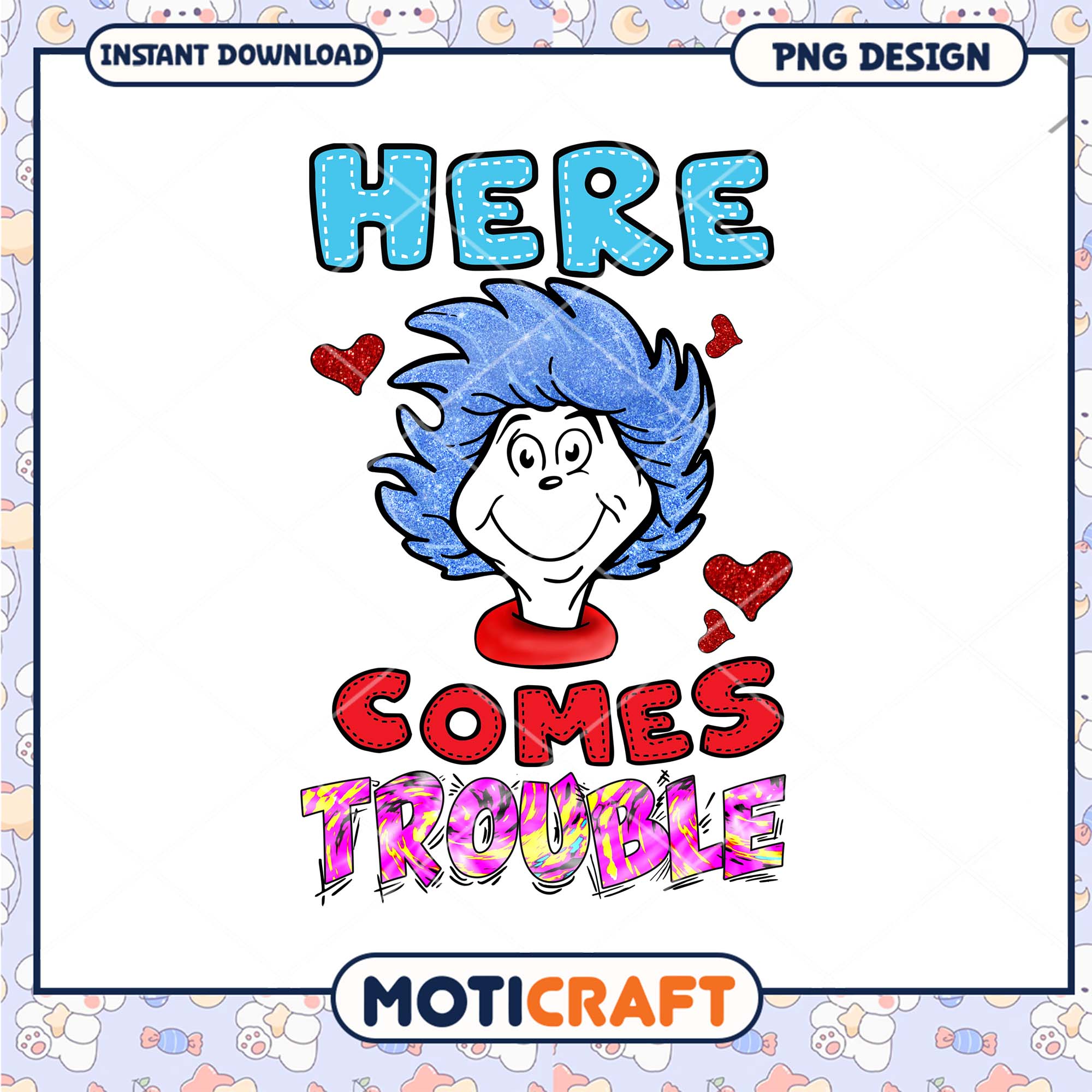 Here Comes Trouble Fun PNG Image with Cartoon Character Design is part of our Dr. Seuss collection, featuring vibrant, high-quality designs inspired by Dr. Seuss’ beloved world. Perfect for crafts, digital design, and personal creations, these PNG files bring iconic characters like The Cat in the Hat, Horton, and the Grinch to life. With transparent backgrounds for easy layering, our Dr. Seuss PNG files are ideal for use in Cricut and Silhouette projects, custom t-shirts, mugs, and more. Whether you’re celebrating Read Across America or simply love Dr. Seuss’ quirky style, this collection offers endless creative possibilities for Seuss fans of all ages. Start crafting today!