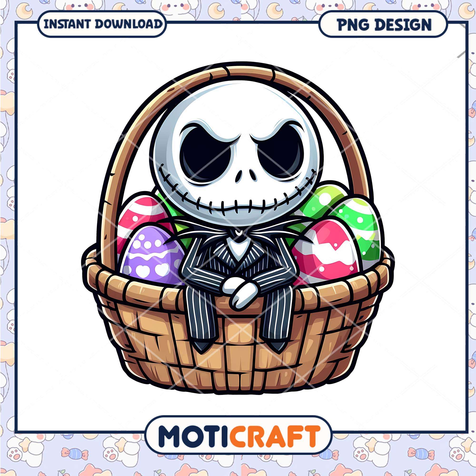 Jack Skellington Easter Basket PNG is part of our Easter collection! This charming set features high-quality designs, including colorful Easter eggs, adorable bunnies, blooming flowers, and festive symbols of renewal. Perfect for creating custom t-shirts, party invitations, greeting cards, and digital artwork, these PNG files are compatible with popular design software and cutting machines. Whether you’re decorating for Easter, crafting personalized gifts, or designing holiday cards, our Easter PNG collection brings joy and creativity to your projects.