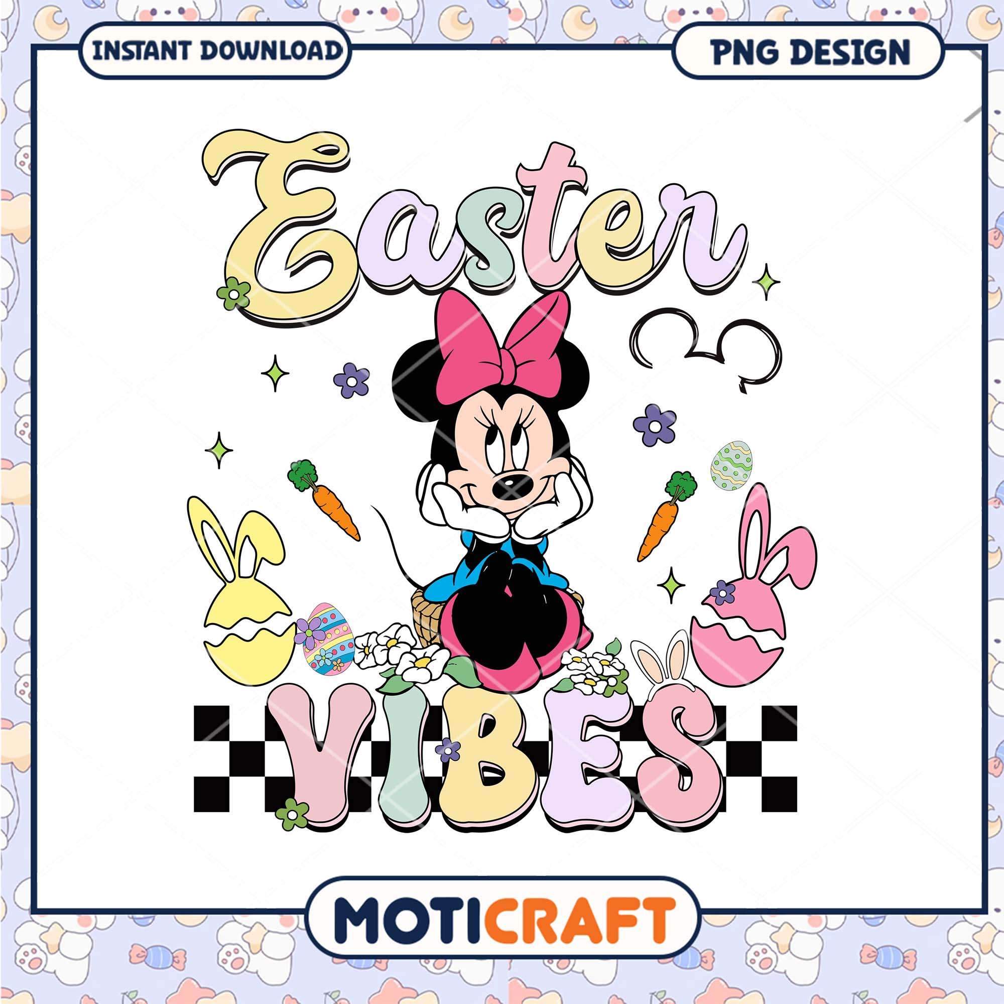 Minnie Mouse Easter Vibes PNG Design is part of our Easter collection! This charming set features high-quality designs, including colorful Easter eggs, adorable bunnies, blooming flowers, and festive symbols of renewal. Perfect for creating custom t-shirts, party invitations, greeting cards, and digital artwork, these PNG files are compatible with popular design software and cutting machines. Whether you’re decorating for Easter, crafting personalized gifts, or designing holiday cards, our Easter PNG collection brings joy and creativity to your projects.