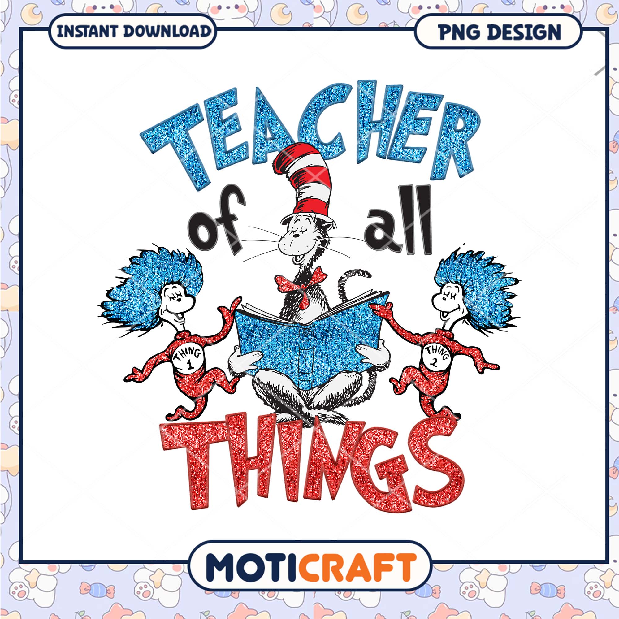 Teacher of All Things Fun Cat in the Hat PNG Design for Educators is part of our Dr. Seuss collection, featuring vibrant, high-quality designs inspired by Dr. Seuss’ beloved world. Perfect for crafts, digital design, and personal creations, these PNG files bring iconic characters like The Cat in the Hat, Horton, and the Grinch to life. With transparent backgrounds for easy layering, our Dr. Seuss PNG files are ideal for use in Cricut and Silhouette projects, custom t-shirts, mugs, and more. Whether you’re celebrating Read Across America or simply love Dr. Seuss’ quirky style, this collection offers endless creative possibilities for Seuss fans of all ages. Start crafting today!