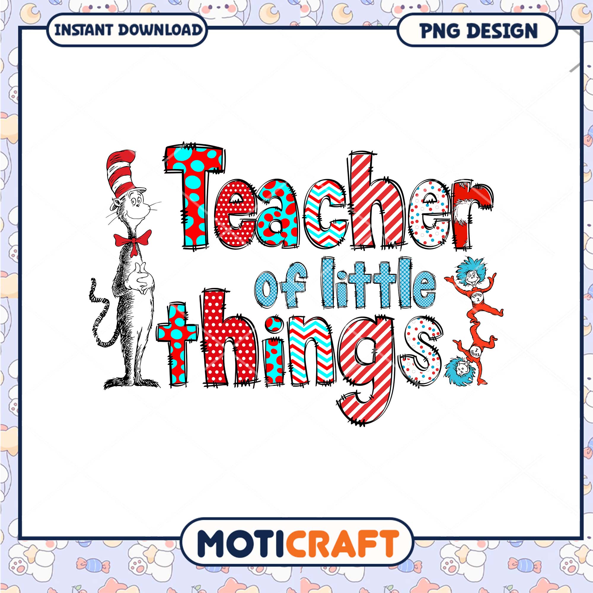 Teacher of Little Things Fun PNG Design for Educators and Kids is part of our Dr. Seuss collection, featuring vibrant, high-quality designs inspired by Dr. Seuss’ beloved world. Perfect for crafts, digital design, and personal creations, these PNG files bring iconic characters like The Cat in the Hat, Horton, and the Grinch to life. With transparent backgrounds for easy layering, our Dr. Seuss PNG files are ideal for use in Cricut and Silhouette projects, custom t-shirts, mugs, and more. Whether you’re celebrating Read Across America or simply love Dr. Seuss’ quirky style, this collection offers endless creative possibilities for Seuss fans of all ages. Start crafting today!