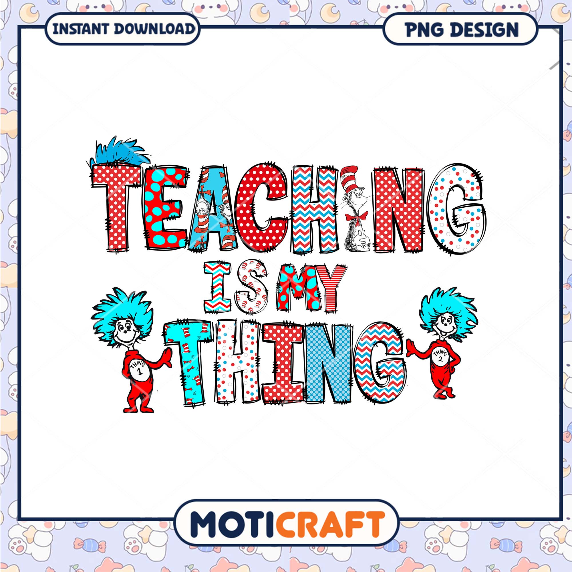 Teaching Is My Thing Fun Colorful PNG Design for Educators is part of our Dr. Seuss collection, featuring vibrant, high-quality designs inspired by Dr. Seuss’ beloved world. Perfect for crafts, digital design, and personal creations, these PNG files bring iconic characters like The Cat in the Hat, Horton, and the Grinch to life. With transparent backgrounds for easy layering, our Dr. Seuss PNG files are ideal for use in Cricut and Silhouette projects, custom t-shirts, mugs, and more. Whether you’re celebrating Read Across America or simply love Dr. Seuss’ quirky style, this collection offers endless creative possibilities for Seuss fans of all ages. Start crafting today!