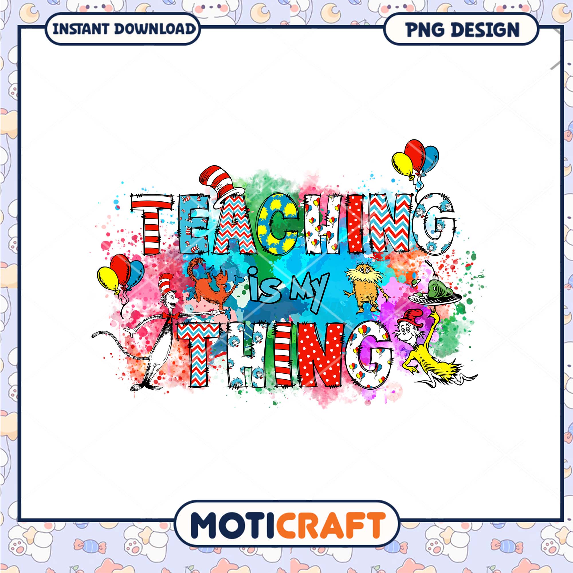 Teaching Is My Thing PNG is part of our Dr. Seuss collection, featuring vibrant, high-quality designs inspired by Dr. Seuss’ beloved world. Perfect for crafts, digital design, and personal creations, these PNG files bring iconic characters like The Cat in the Hat, Horton, and the Grinch to life. With transparent backgrounds for easy layering, our Dr. Seuss PNG files are ideal for use in Cricut and Silhouette projects, custom t-shirts, mugs, and more. Whether you’re celebrating Read Across America or simply love Dr. Seuss’ quirky style, this collection offers endless creative possibilities for Seuss fans of all ages. Start crafting today!