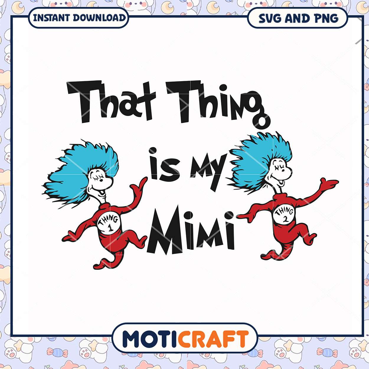 That Thing is My Mimi design for fun gifts is part of our enchanting Dr. Seuss collection, designed to bring the quirky world of Dr. Seuss into your creative projects. Featuring iconic characters like The Cat in the Hat, the Lorax, and the Grinch, these scalable vector graphics are perfect for Cricut, Silhouette, and other cutting machines. Ideal for creating personalized t-shirts, mugs, party favors, or classroom decorations, our Dr. Seuss SVG files are easy to use and ensure sharp, high-quality results every time.